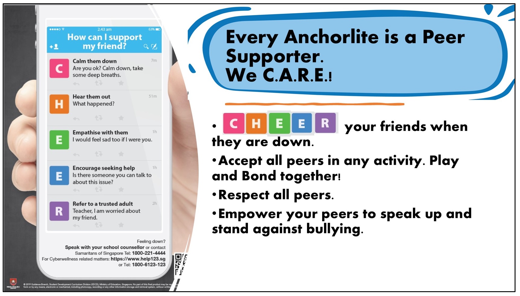 At AGPS, student well-being is at the heart of what we do. Our framework is built on the belief that “Every Anchorlite is a Peer Supporter”, empowering every student to play an active role in creating a supportive and inclusive school environment.