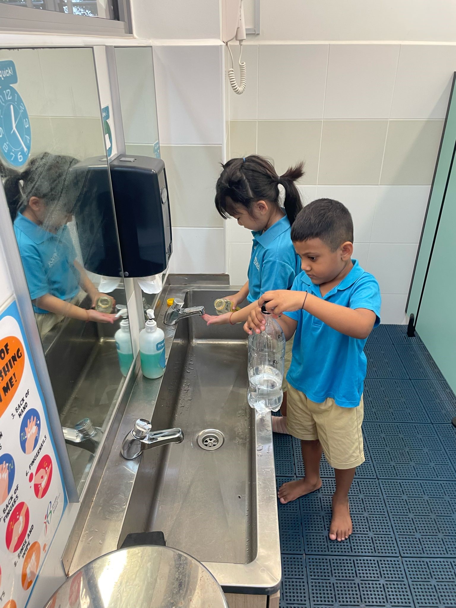 At MK@AG, our young learners recently took part in a meaningful celebration of both World Water Day and Earth Day, engaging in a variety of hands-on activities designed to deepen their understanding of environmental responsibility. To start, children were encouraged to bring their own water bottles from home. Throughout the day, they used the water they brought to wash their hands—such as after outdoor play or before snack time—highlighting the importance of conserving water in daily routines. This simple but effective activity helped students become more aware of how much water they use and how small changes can make a big difference. |