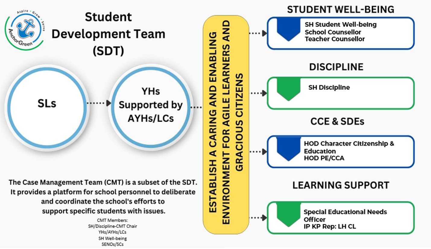 - Support the professional development of staff for their role in student well-being and 21CC development.