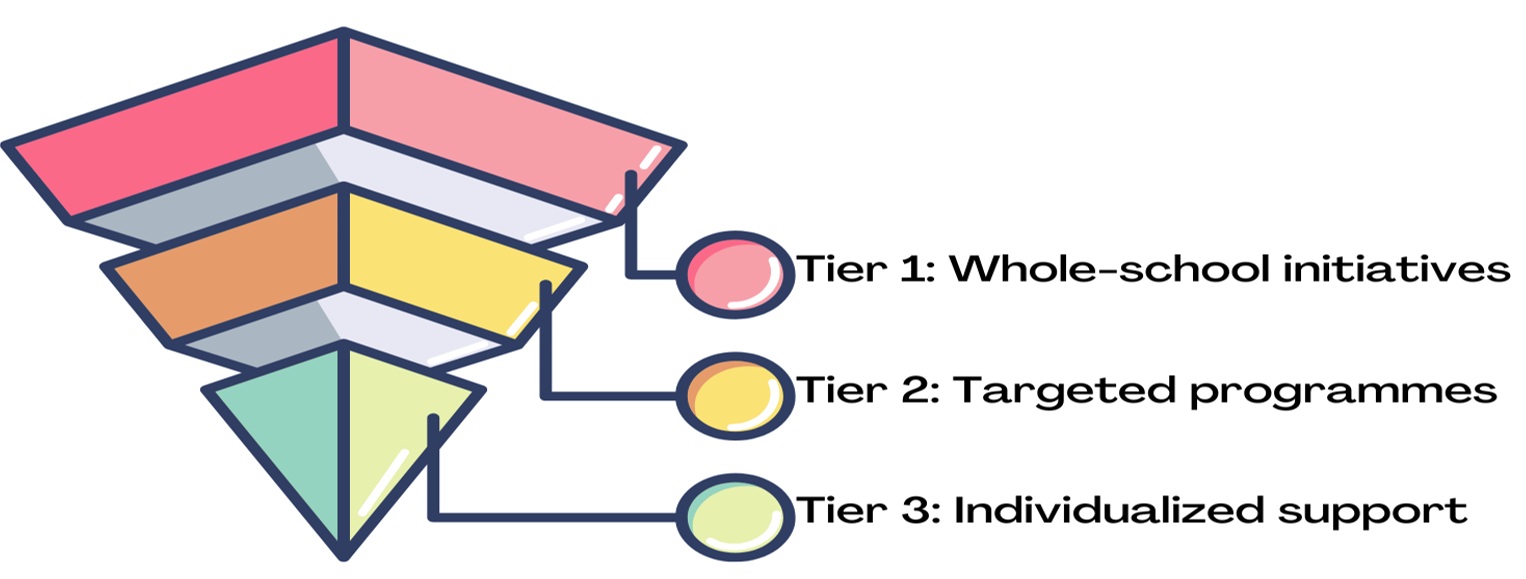 - Tier 3: Individualized support (e.g., Counselling, Special Educational Needs support) to address specific student needs.