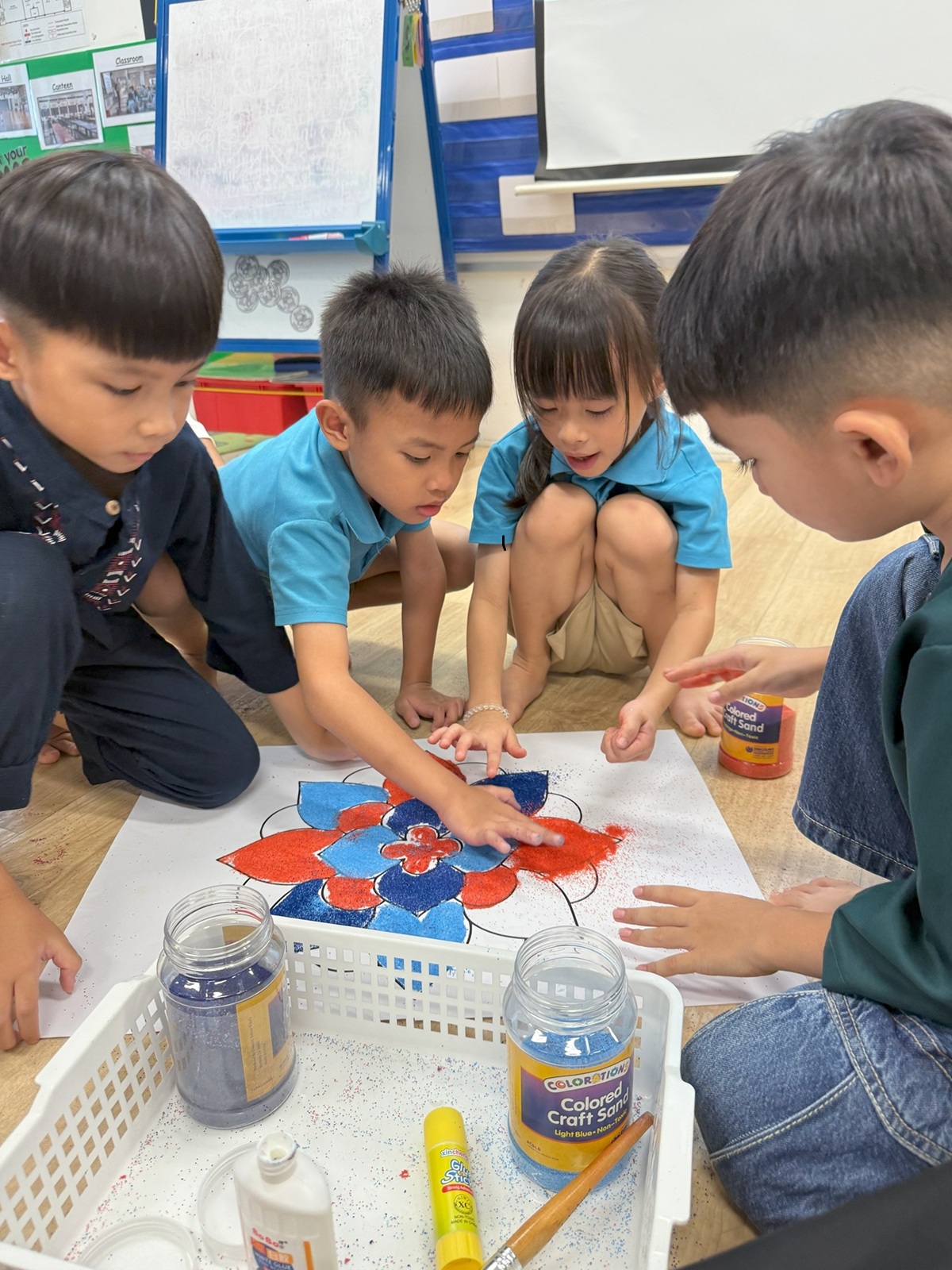 | Meanwhile, the K2 students took a more hands-on approach by crafting vibrant 3D flowers as their tribute. Using their own handprints to form petals and colorful straws as stems, they created thoughtful and imaginative gifts. These handmade flowers were a symbol of their admiration and love, created with both joy and care as a way to honor their parents in a special and memorable way. | |