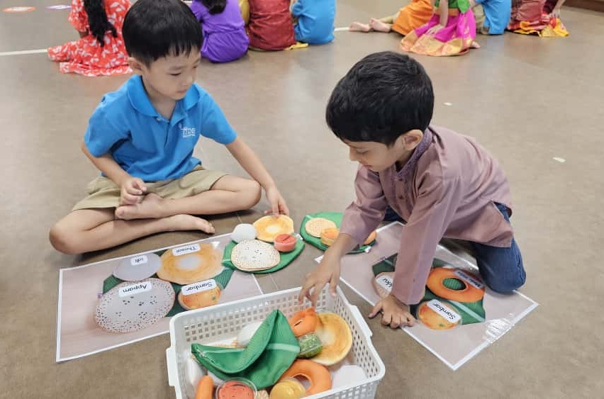 | To further immerse the children in Singapore’s rich multicultural heritage, they were also introduced to a variety of traditional local snacks during snack time. This included ladoo, ang ku kueh, and kek lapis—treats that represent the diverse cultures that make up our nation. The children thoroughly enjoyed trying the different snacks and engaging in the hands-on activities, making it a truly memorable and meaningful day for all. | |