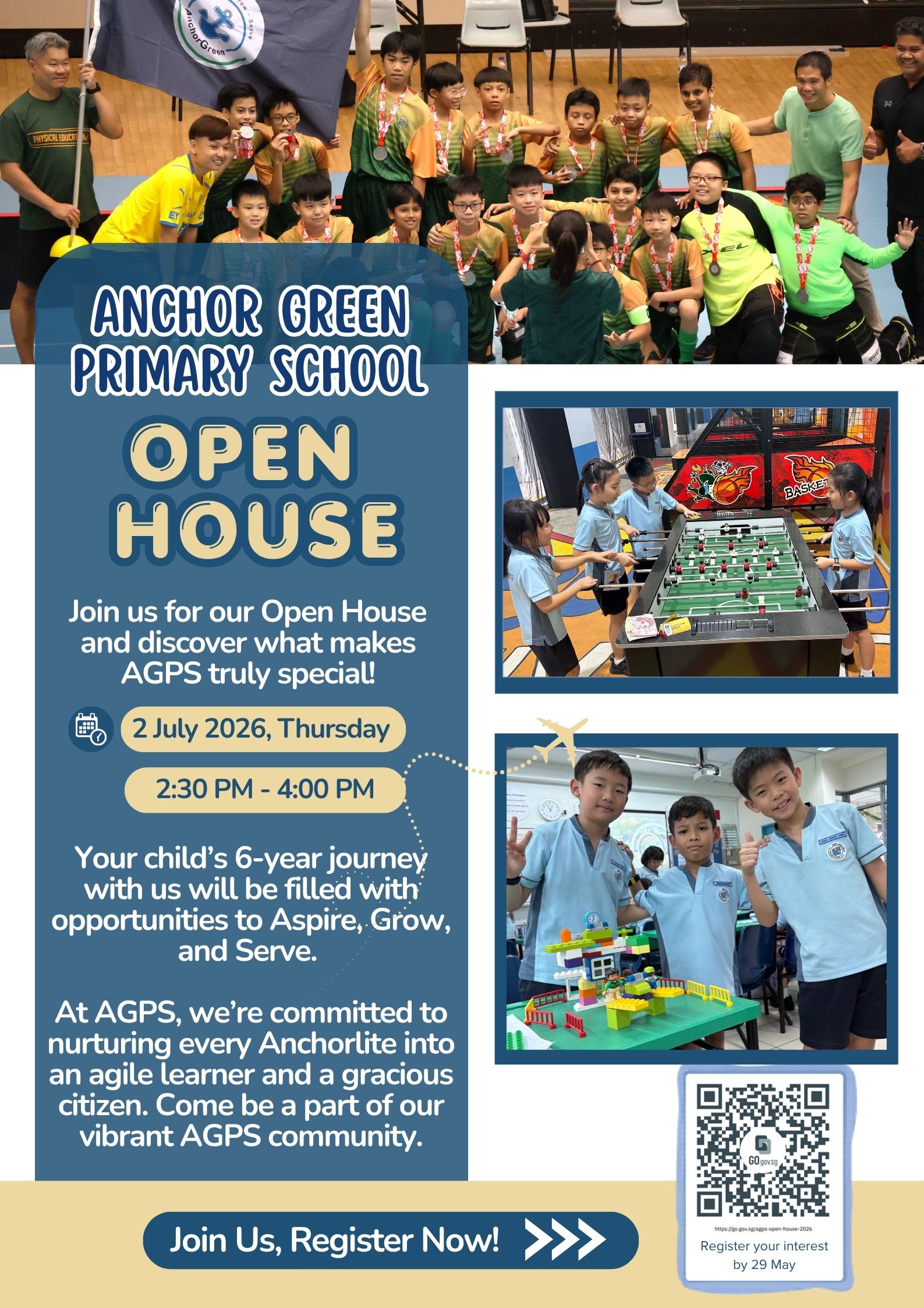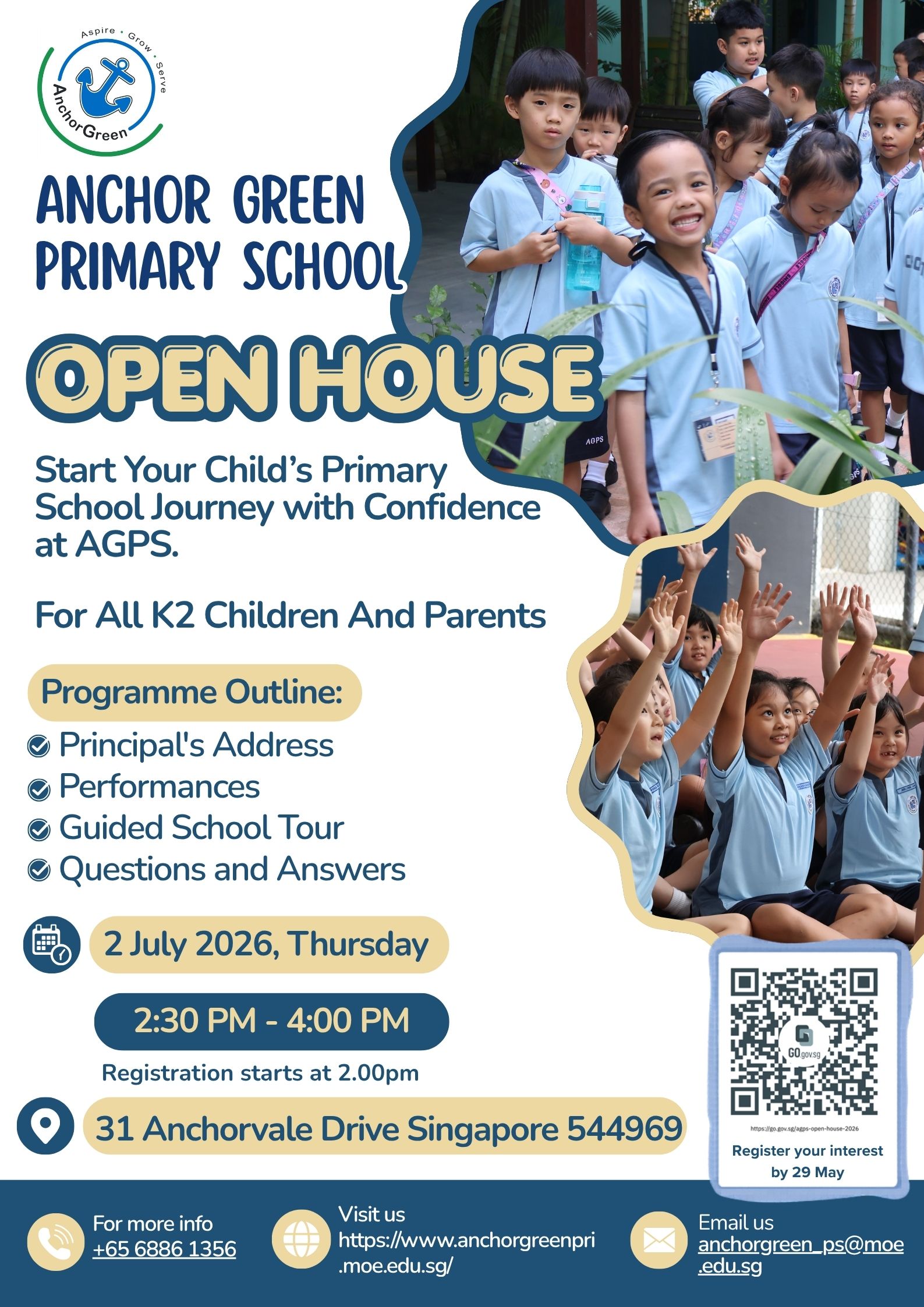 We warmly invite parents of K2 children to visit Anchor Green Primary School and experience our vibrant learning environment firsthand. Join us to learn more about our programmes, school culture, and how we nurture confident and future-ready learners.